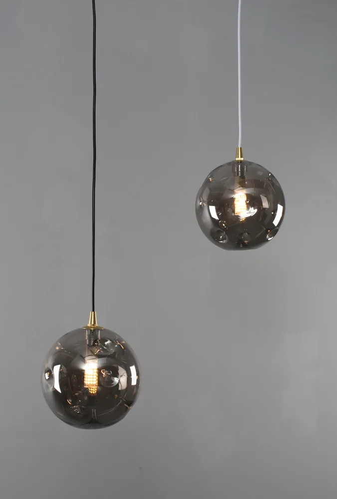 כדור זכוכית מיוחד מסדרת הזכוכיות של קובי דגם E בקוטר 15 ס"מ- בגימור כרום עם שקעים על משטחו.