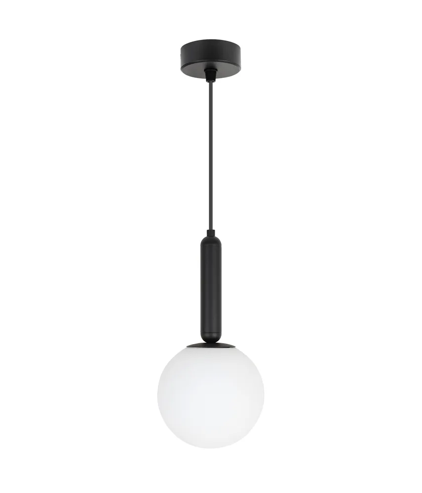OPAL מנורת תלייה E14 מוט עבה שחור עם זכוכית חלבית 15 ס"מ