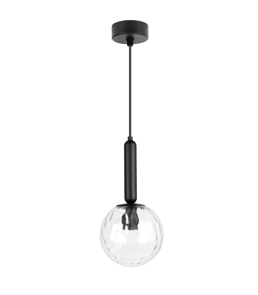 OPAL מנורת תלייה E14 מוט שחור עבה עם זכוכית משובצת 15 ס"מ