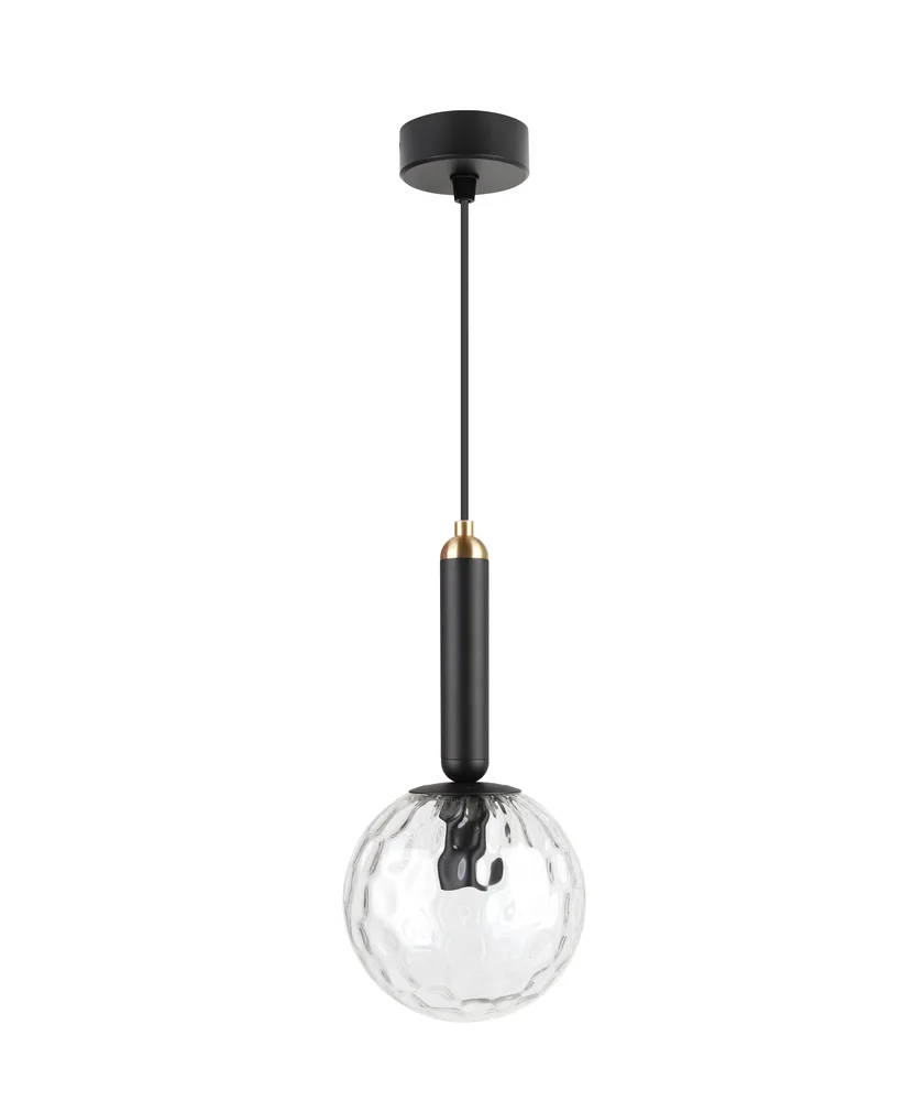 OPAL מנורת תלייה E14 מוט עבה שחור עם פקק מוזהב וזכוכית משובצת 15 ס"מ