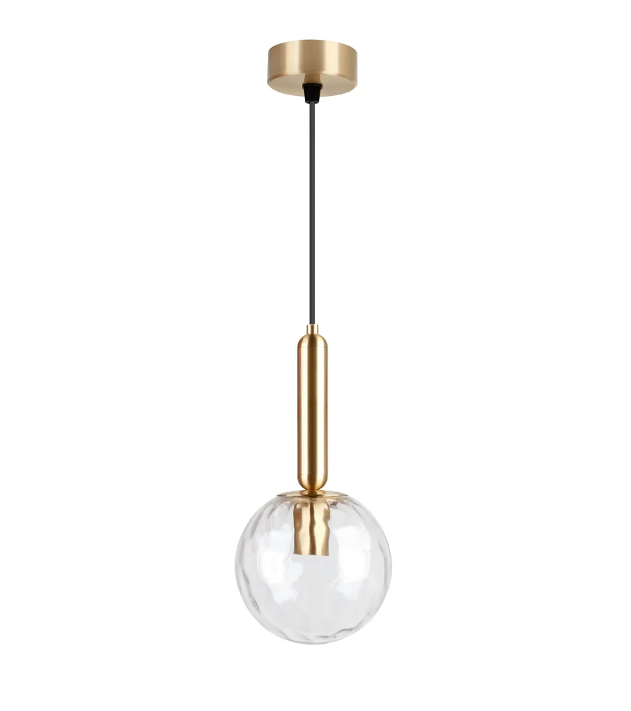 OPAL מנורת תלייה E14 מוט מוזהב עבה עם כדור זכוכית משובצת 15 ס"מ